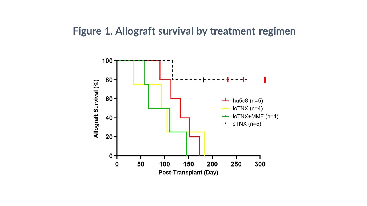 Conclusions: Blockade of CD154 with sTNX monotherapy was not associated with thrombotic events, well tolerated, and consistently prevented pathogenic alloimmunity in this stringent preclinical model. Lower TNX maintenance dosing, with or without MMF, was less effective.