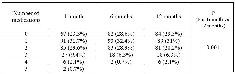 Method: A single center retrospective study of the renal transplant recipients who underwent kidney transplantation between January 2017 to May 2020 with12 months follow up. We reviewed BP readings before transplant and at one month, 6 months, 12 months after kidney transplantation. We also reviewed the number of BP medications at the same intervals post transplantation. BP goal was <140/90. during the time of this retrospective study as per the published guidelines3.