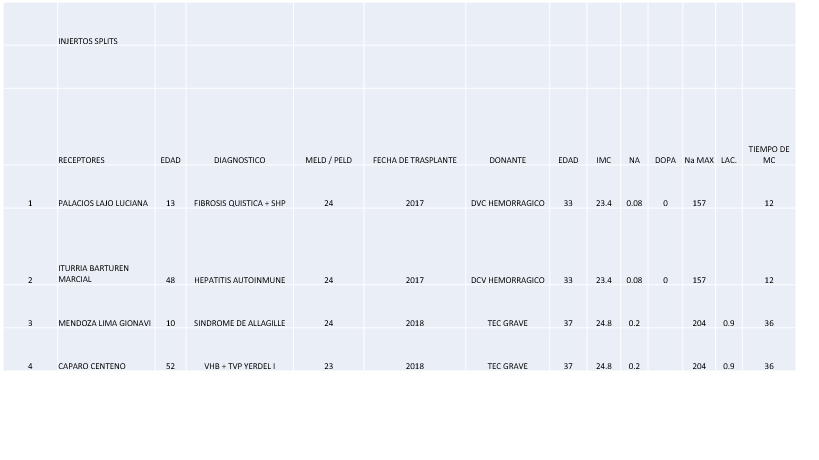 Conclusion: Liver transplantation with the SPLIT technique is an option to expand the pool of donors and is a reality in our country, hoping to make further progress in order to continue helping our patients on the waiting list. The described procedure is effective and must be performed by experienced surgical teams and under high standards of quality and excellence.