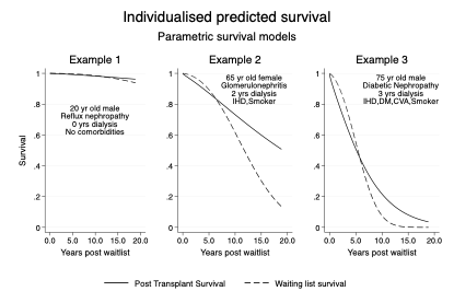 Conclusions: FPM can predict risk for patients on the kidney transplant waitlist. For the first time, this enables absolute survival prediction, to help patients and clinicians understand the likely outcomes of transplantation vs remaining on dialysis. The next step will be model validation and incorporation of quality-of-life utilities.