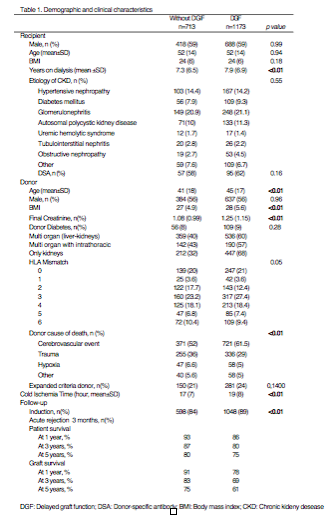 Conclusion: We confirmed the high incidence of DGF in our country. Furthermore, the analysis on the risk factors associated with DGF were not as much as different as in other countries where the incidence of DGF were lower. Further studies should be done to unravel the cause of this high incidence of DGF in Argentina.
