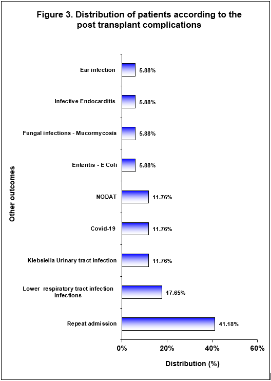 Among other complications, NODAT was found in 11.76%, 8 patients (47.05%) developed infections within 12 months follow up and post-transplant repeat admission was noted in 7 patients (41.18%).