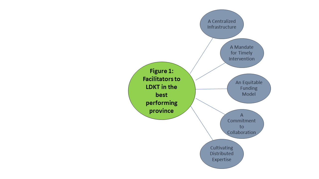 Results: In the best-performing province of Canada, five themes emerged as facilitators to the delivery of LDKT to patients. The relationship between two provincial organizations (a regional transplant and a regional nephrology order) was identified as key to enabling the mandate and processes for LDKT. On the other hand, in the worst-performing province, similar themes emerged as barriers to LDKT. Barriers were identified at the levels of organizational coordination, professional knowledge, resources, geography, and governance. Particularly, inconsistent coordination between regional clinics and transplant centers and poor role definition was seen to hinder and delay care processes.