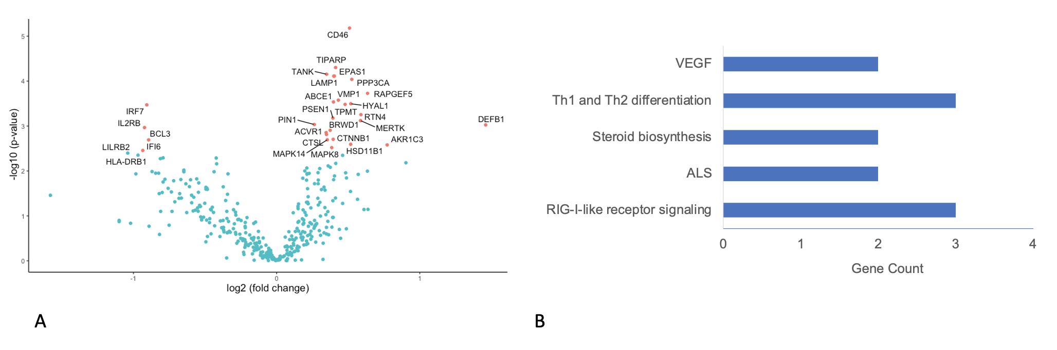 Methods: A total of 38 formalin fixed paraffin embedded (FFPE) liver biopsy specimens were included (9 normal liver tissue, 21 ACR, 8 CR). Specimens from recipients with HBV, HCV, or autoimmune hepatitis were excluded. RNA was isolated from FFPE sections, and gene expression was measured using the NanoString platform. Differential gene expression (DE) analysis and pathway analysis (PA) using the KEGG database were performed, with Benjamini Hochberg p-value correction for false discovery rate.