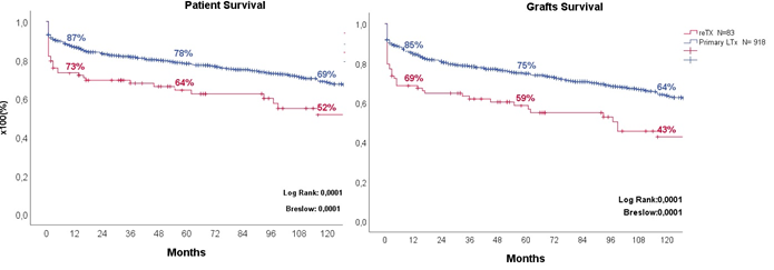Material and methods: Retrospective analysis of patients >18 years old who received LTx or re-transplant (re-Tx) between June 1995 and March 2022. Donor’s and recipient’s clinical variables, including graft and patient were analyzed. Statistical analysis was performed with SPSS version 25.0.