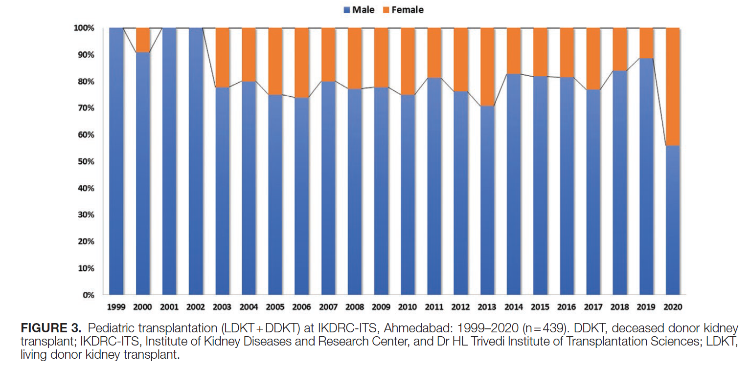 Introduction: There is scarcity assessing the true burden of gender disparity in organ transplantation from the developing world.