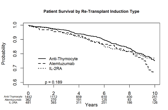 Conclusion: Compared to anti-thymocyte induction, alemtuzumab, but not IL-2RA, was associated with inferior graft survival in preemptive second transplant recipients discharged on tacrolimus and mycophenolate.