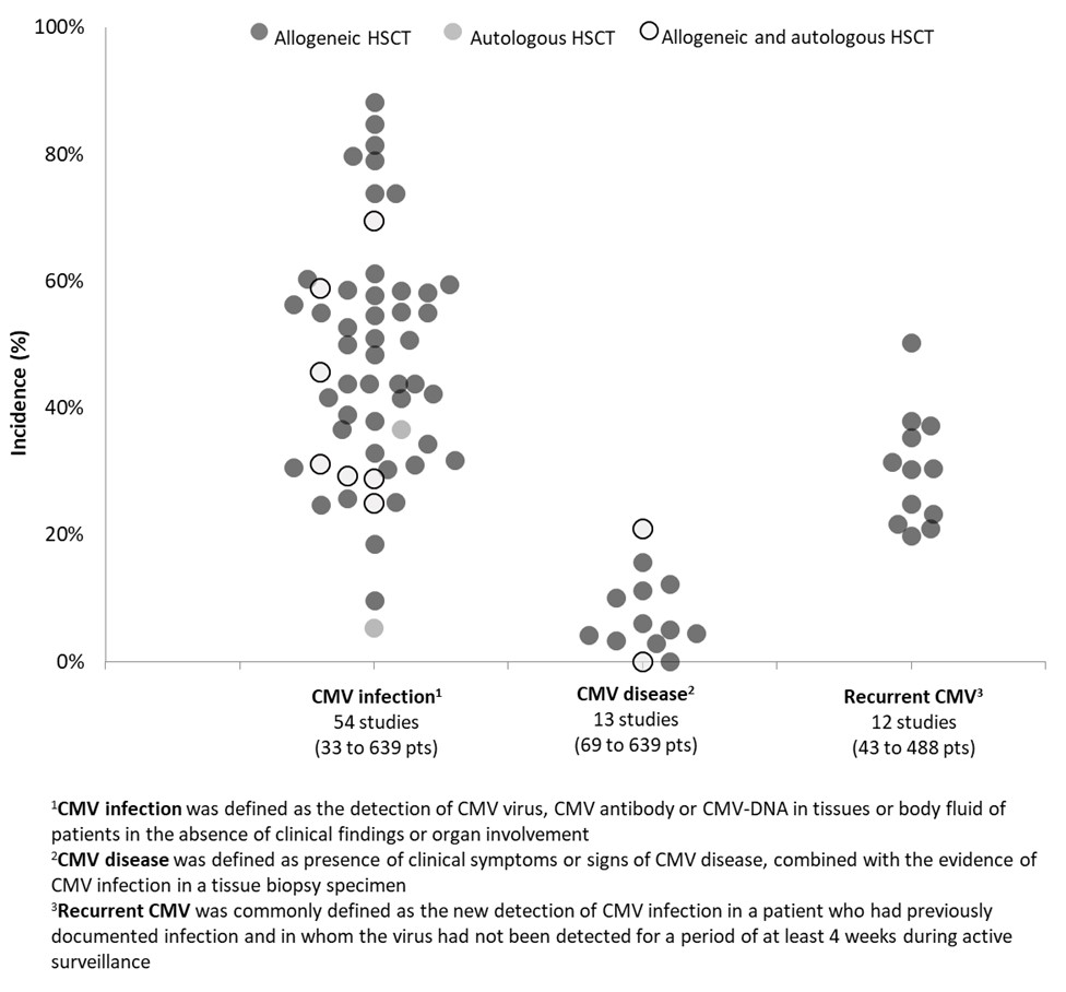 Conclusion: Relatively high rates of CMV infection, CMV disease and CMV recurrence were reported post-HSCT, with CMV-related mortality observed in up to 1 in every 10 patients. High rates of CMV infection and disease post-HSCT may impact graft outcomes and increase disease burden in patients post-transplantation.