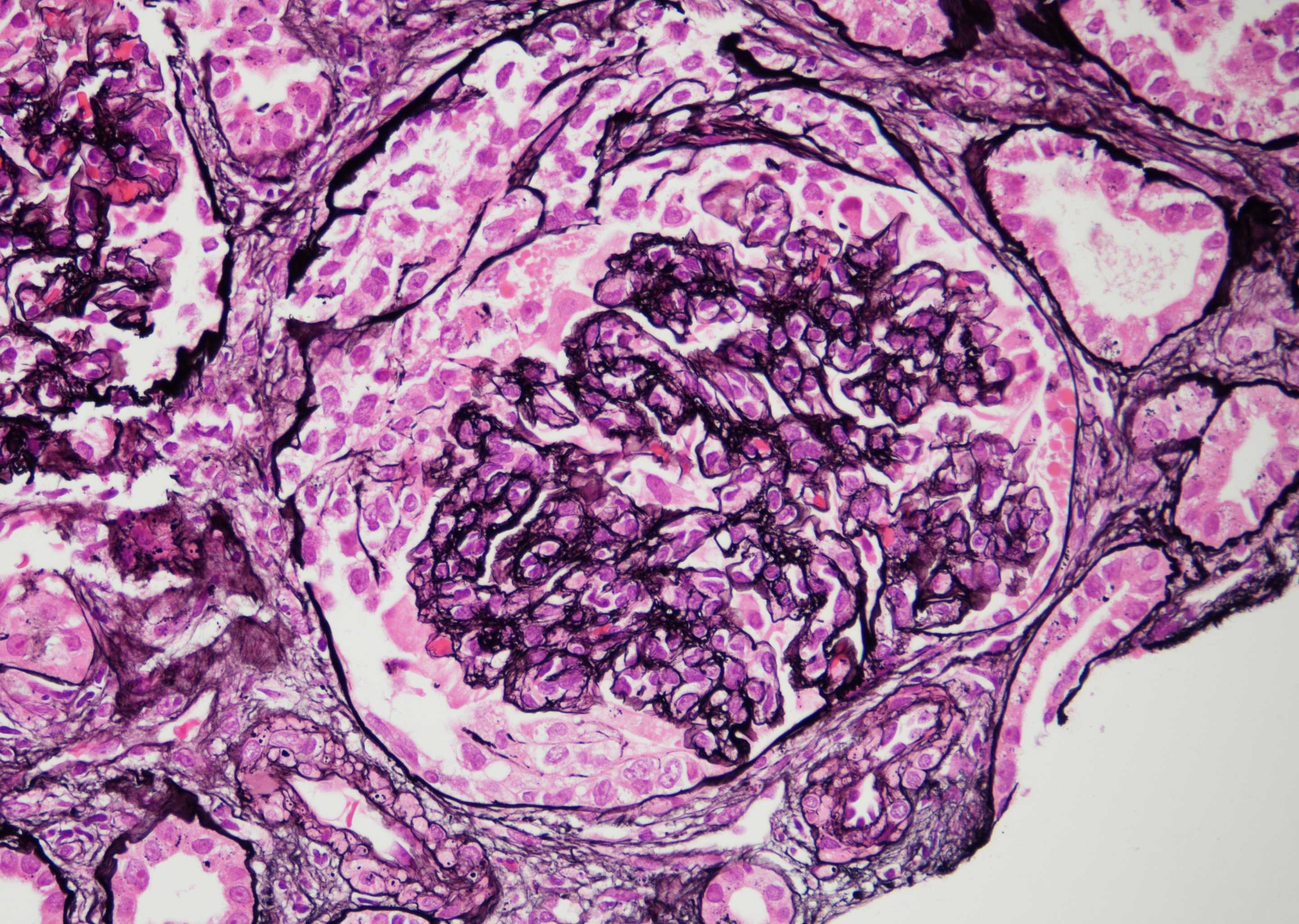 Conclusions: There is limited literature published on infection related glomerulonephritis in transplant recipients with Bartonella. The few documented cases with Bartonella post-transplant have been seen in association with native valve endocarditis. Our patient had no vegetation on Echocardiogram. Given the severity of disease on pathology, with crescents, pulse dose steroids likely helped decrease inflammation. This is a unique case of Bartonella induced infection related glomerulonephritis that led to AKI requiring dialysis with resolution following treatment with antibiotics, immunosuppression reduction and steroid therapy.