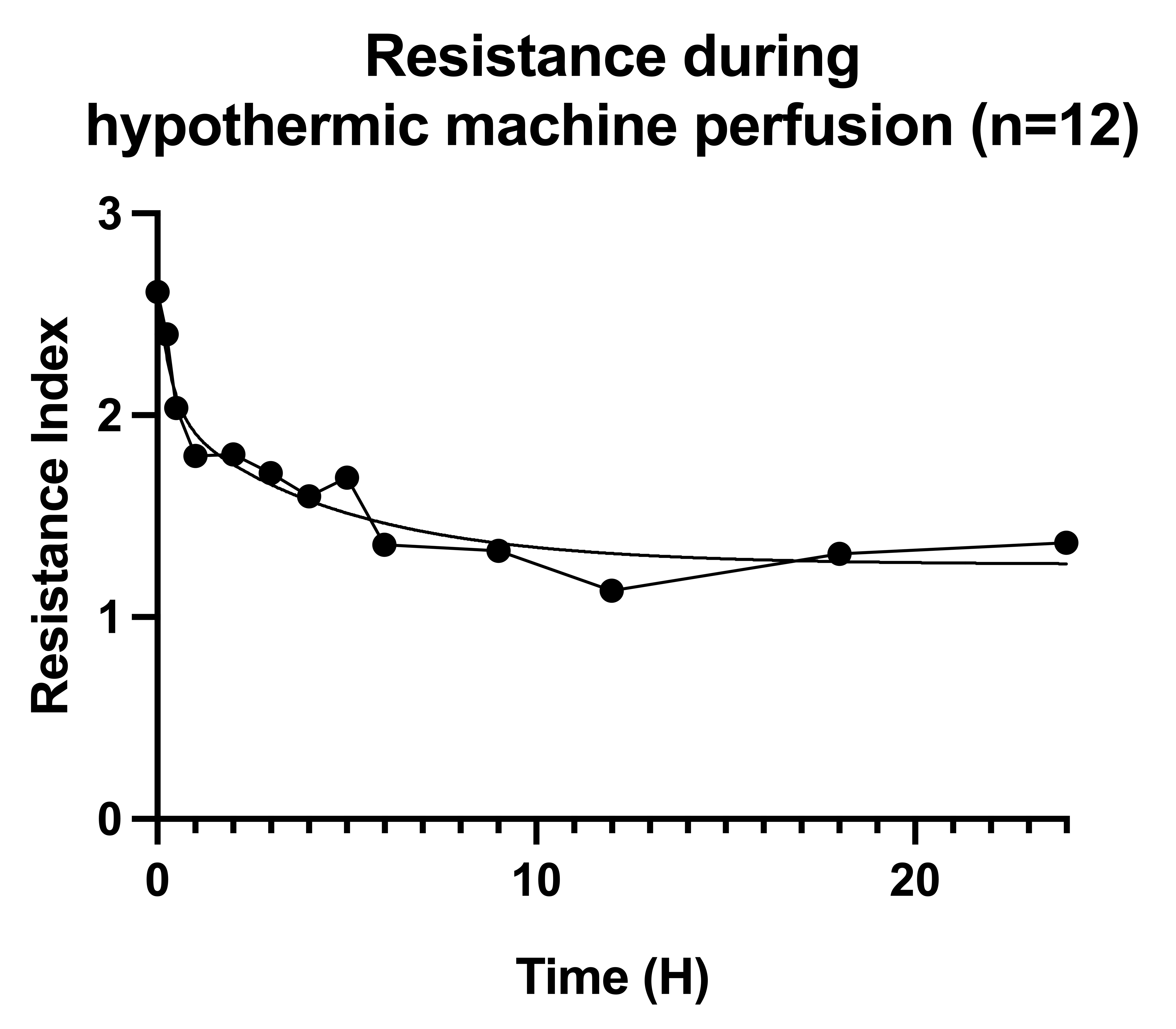 Results: The intra-tissue partial pressure of oxygen of during SCS was from the start of preservation equal to 0 and this throughout the experiment. Conversely, during HMP or HOPE, the oxygen level increases during the first 2 hours before stabilizing. In parallel, the resistance index decreases during the first 2 hours before stabilizing. Partial pressure of oxygen during hypothermic preservation were presented in Figure 1, 2.