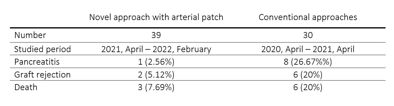 Results: Between 2021 April to 2022 February, fifty-nine PT was performed in which thirty-nine of them were with this approach. This leaded to a dramatic increase comparing to the numbers in the year before (30). The primary outcomes of this technique, including pancreatitis, rejection, and death, are significantly promoted and summarized in Table 1.