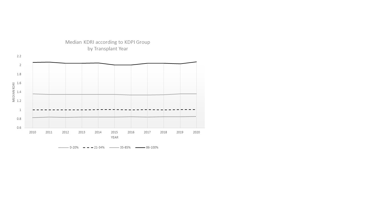 Background: The Kidney Allocation System (KAS) was implemented in 2014, modifying allocation and introducing the Kidney Donor Profile Index (KDPI) as a metric of organ longevity and graft failure. KDPI >85% predicts a higher risk of graft failure, which may result in a negative labelling effect. High discard rates over time could engender a drift in the metric wherein “riskier” kidneys are not included in the pool and lower risk donors would then be associated with a higher score. We sought to determine transplant rates according to KDPI, changes in sharing according to KDPI, and characteristics of organs used in the pre and post KAS eras.
