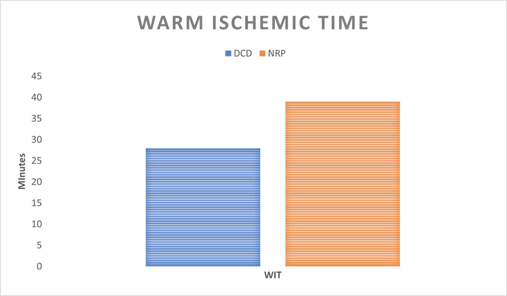 Conclusion: NRP is a valid option for DCD recoveries and provides the accepting centers with an opportunity to evaluate the organs as they would in a DBD recovery. Utilizing NRP DCD allows for optimal utilization of donors which may in turn lead to acceptance of longer agonal phases and warm ischemic time if these results persist with larger study populations.