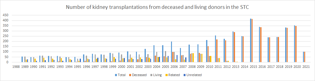 Results: Up to March 2021, in the STC, overall 5389 kidney transplantations have been performed. Figure 1 shows the trend in kidney transplantation in the STC.