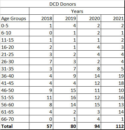 This OPO saw a 24% growth in organ donors from 2018 to 2021. This growth was realized by growing their DCD donor population by 96%, from 57 donors in 2018 to 112 donors in 2021. Of the 112 DCD donors in 2021, 5.4%% (6) donors had life sustaining therapy withdrawn because of a devastating anoxic injury that was secondary to an overdose. Of the 304 combined BD and DCD donors with anoxic injury as their cause of death during the four-year study period, 13.8% of the anoxic injuries were the result of drug intoxications. Looking at all 832 donors for the same period, overdose represented just 5% of the total donor population from this OPO.