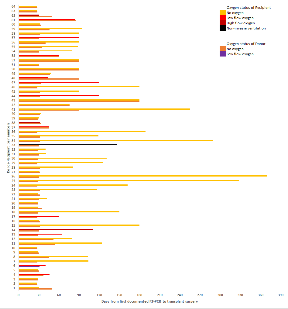 Methods: We explored the protocol, outcome, and follow-up of 64 LDKT when D-R pair had recovered from COVID-19 in a retrospective, multicentre (n = 12) study from India between October 29, 2020, to December 1, 2021. There was no change in induction/ immunosuppression regimen in the study among different COVID-19 severity and is similar to standard practice.